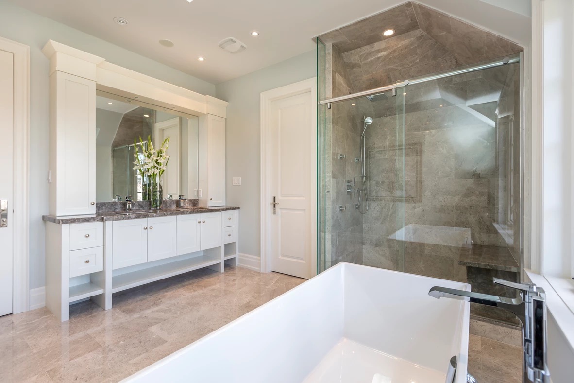 A bathroom renovation or remodelling project is similar to a kitchen in some respects. Often, when you have lived in a house for a few years (or longer), you’ve grown accustomed to each room and its layout. You may not notice that some things don’t work as smoothly as they did before, or that the wallpaper or flooring has become outdated. Another factor is space – people don’t often realize what a big difference it can make to have a few more square feet of useable space within the bathroom and that this can often be gained simply by ‘re-arranging’ a few things such as the toilet or shower. We can discuss your individual options when we come out to take a look at your situation.